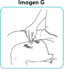 - Limpie el lugar de la inyección con la toallita humedecida con alcohol, haciendo un movimiento circular. Déjelo secar antes de poner la inyección (ver Imagen G).